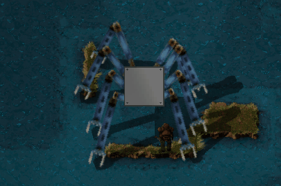 This is the very early preview of the first tests of the Spidertron movement mechanics. As you can see it is an alternative vehicle usable by the player. It can overcome small water bodies and obstacles easily. The graphics is obviously just a placeholder, but enough to get the idea.